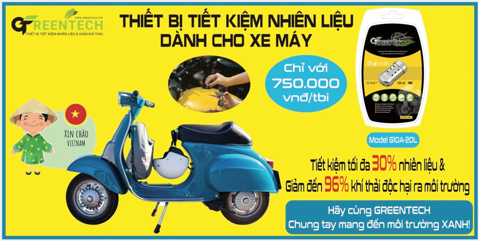 Thiết bị tiết kiệm nhiên liệu GreenTech là một bước đột phá công nghệ dành cho xe máy, mô tô, ô tô, xe tải, tàu, thuyền… Sản phẩm của GreenTech không chỉ vừa giúp tiết kiệm nhiên liệu mà còn là giúp giảm khí thải độc hại ra môi trường, cùng nhau mang đến môi trường xanh cho cộng đồng.